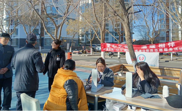 在义诊活动中,21名员工党员们发挥自己的专业优势,为80多名师生及家属进行了血压测量和健康咨询。党员们为前来的师生及家属仔细测量血压,并记录下相关数据,同时为他们从饮食、运动、心理调节等方面,提供了关于高血压防护建议。