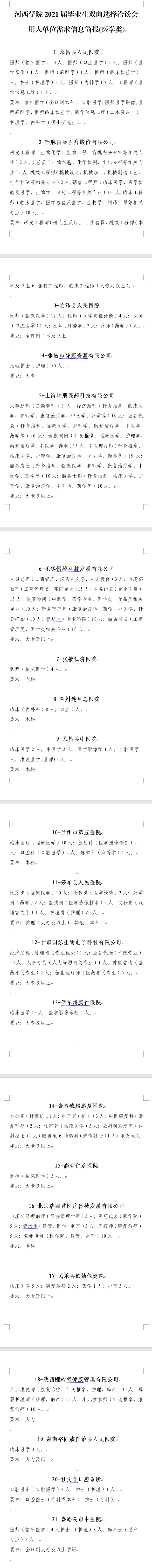 yl6809永利12月28日医学类双选会参会单位需求信息汇总(更新中)