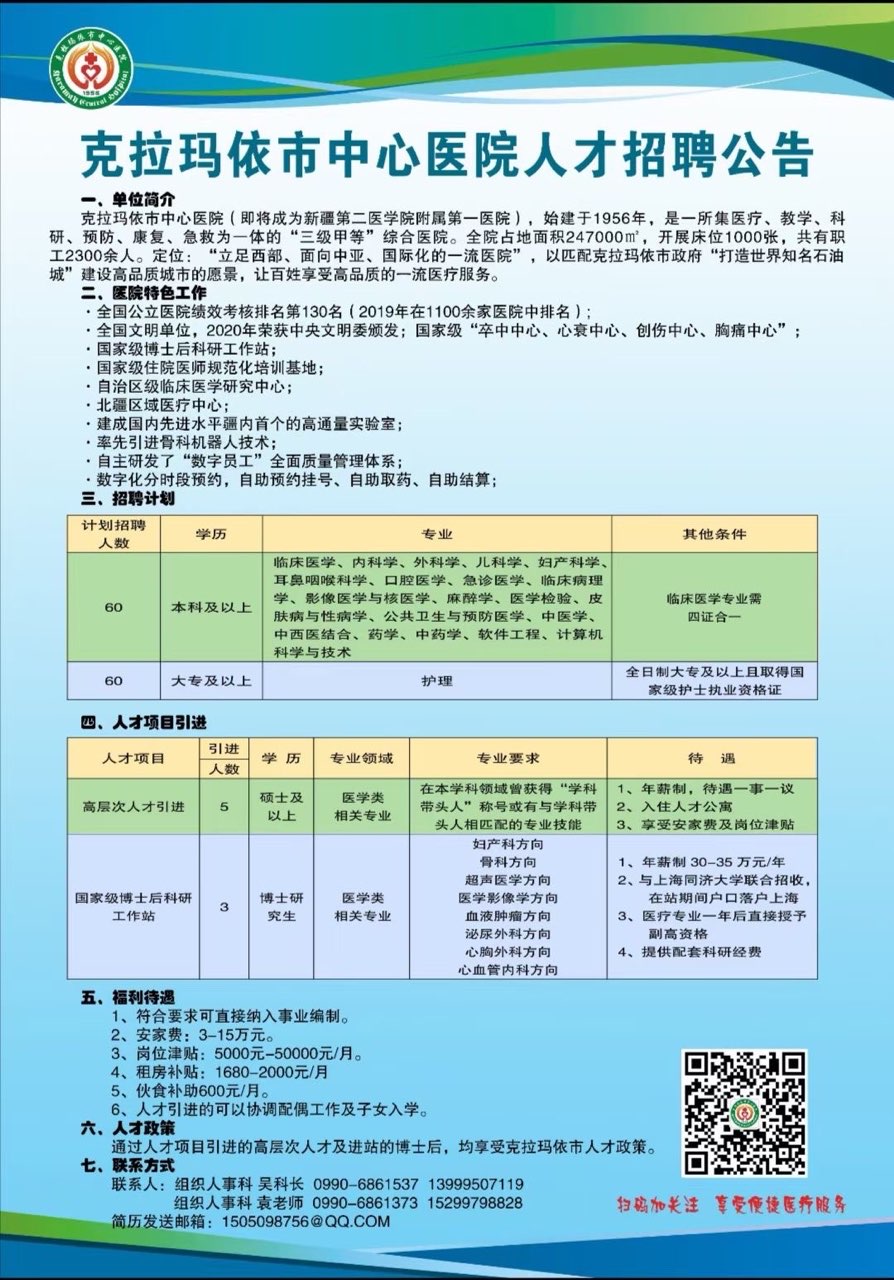 卡拉玛依市中心医院人才招聘公告