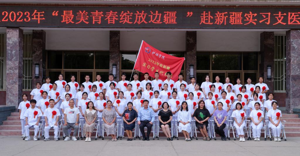 6月17日下午,公司举行了2023年“最美青春绽放边疆”赴新疆实习支医出征仪式。护理公司党委书记沈承明、副经理杨淑珍、2024届各本专科班班主任、全体辅导员和赴新疆实习支医的84名同学参加出征仪式。