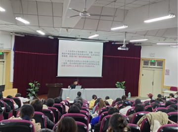 蒋超老师以《习近平新时代中国特色社会主义思想概论》为题多维度、多角度、深层次解读了习近平新时代中国特色社会主义思想的思想地位、时代主题、哲学基础、核心要义和坚持发展等五个方面的内容。