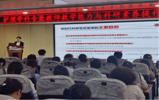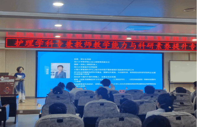 本次培训通过专家讲座、学术报告、教学示范、新教师试讲等形式开展,邀请到四川大学华西医院护理部主任蒋艳教授及四川大学商公司张欣莉教授分别做了题为“临床护理科研设计与实践”和“护理交叉学科科研创新与实践”学术交流,两位专家分别从护理研究范式、护理研究内涵的转变、护理研究案例和护理交叉学科科研的背景、人工智能+护理管理教育人理念及实施等方面做了精彩分享。
