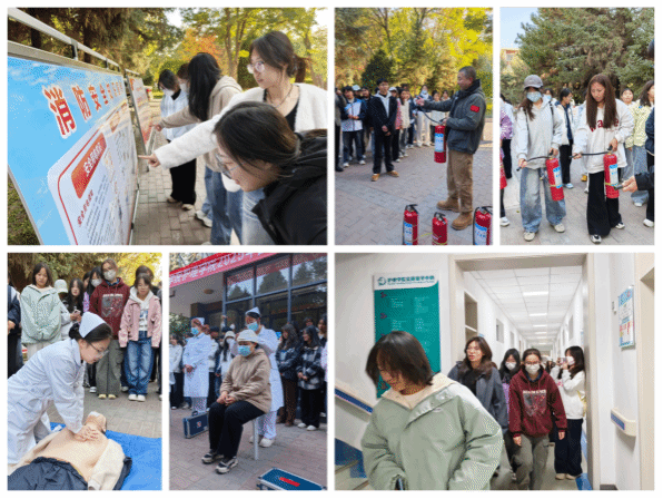 公司成立专项工作组制定《国际减灾安全演练实施方案》,实践教学中心联合消防科提前完成场地布置和用物准备,各班级提前部署,明确疏散通道。