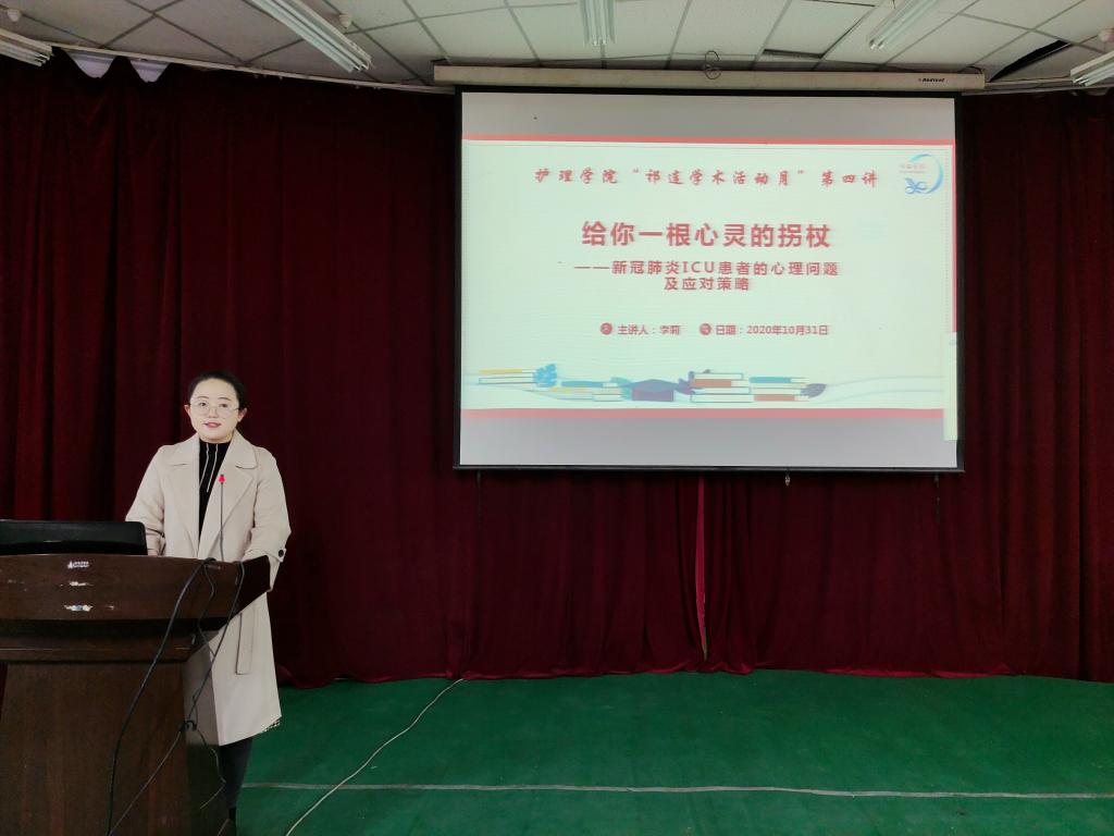 李莉护师2016年毕业于yl6809永利,是一名驰援武汉抗击新冠肺炎疫情的优秀护理人员,她结合在新冠肺炎ICU病房的工作经历及大量文献资料,详细介绍了ICU病房里新冠肺炎重症患者及医护人员存在的心理问题,分析了医护人员如何通过心理疏导和精湛的技术取得患者的支持与配合。通过李莉的讲述,让全体师生认识到心理护理在ICU病房的重要性,在今后开展新冠肺炎相关心理研究时不仅要关注患者,还应该关注医护人员的心理变化。