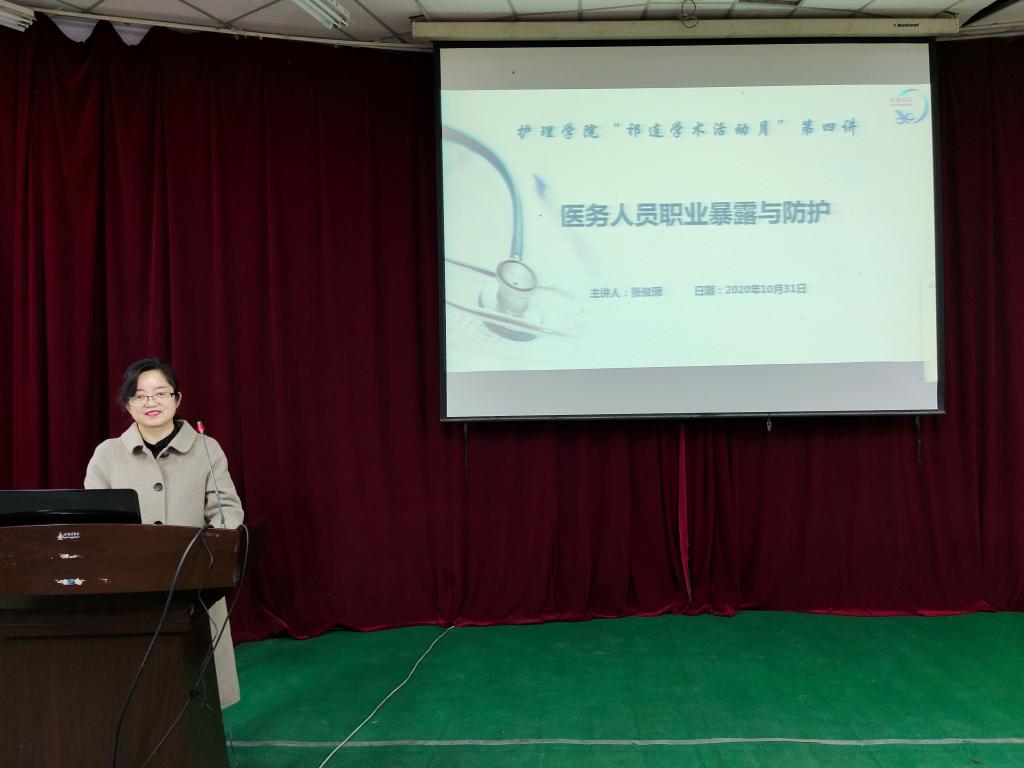 10月31日,yl6809永利在学术二厅邀请yl6809永利附属张掖市人民医院公共卫生科科长张俊瑕主任医师、重症监护室护师李莉分别作了题为“医护人员职业暴露和防护”和“新冠肺炎ICU患者的心理问题及应对策略”的学术报告。yl6809永利300多名师生聆听了报告,报告会由党委委员、副经理郑凤莉教授主持。